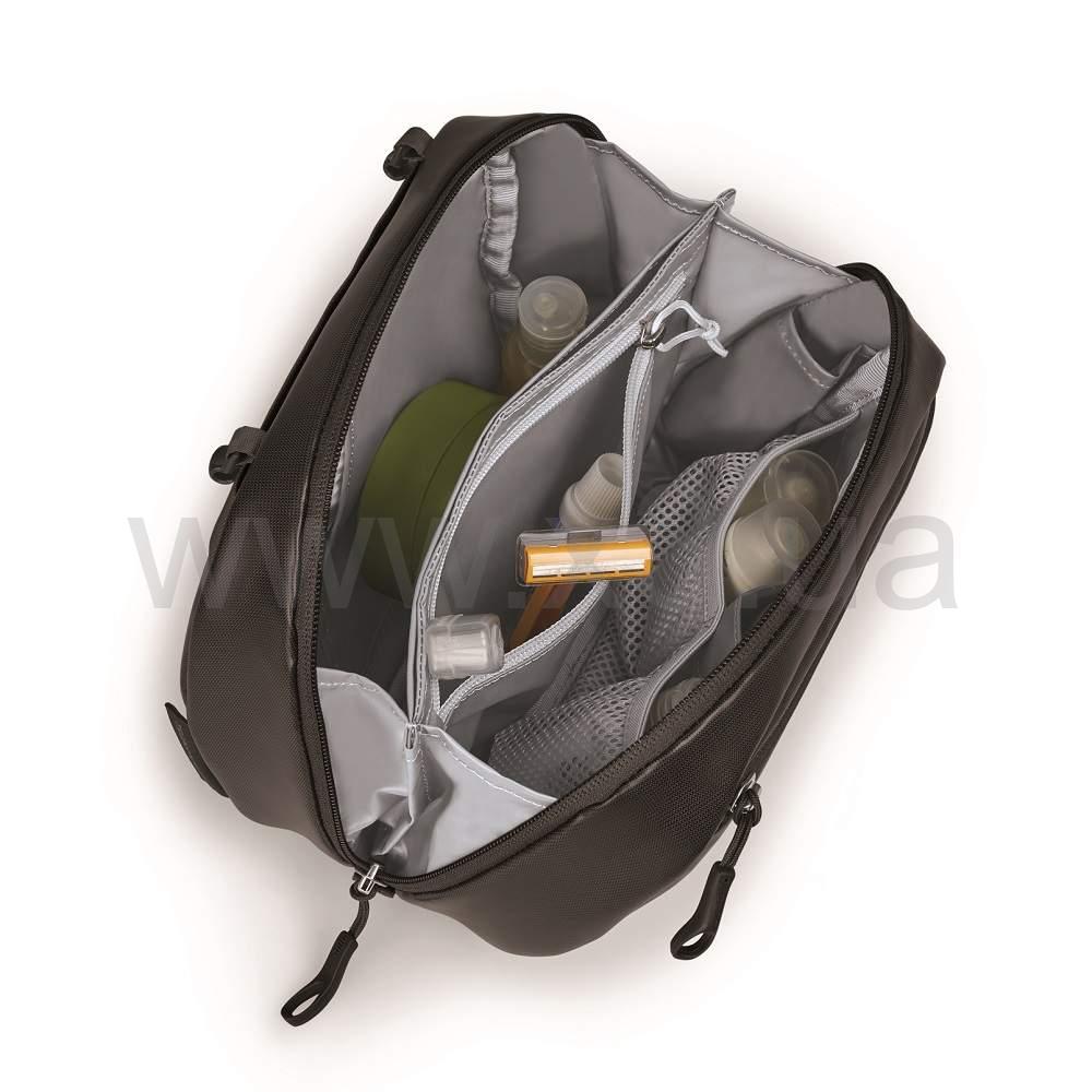 Osprey Transporter Toiletry Kit Large – идеальный вариант вместительной косметички для путешествий. Она зонирована, все вещи будут иметь свое место. Косметичка имеет два основных отделения и несколько сетчатых карманов, куда удобно положить мини-шампунь или гель для душа. Изготовлена из полиэстера, защищена от влаги, а эту ткань легко чистить. Это идеальный вариант для отпуска на море или длительного путешествия в другой город или страну.