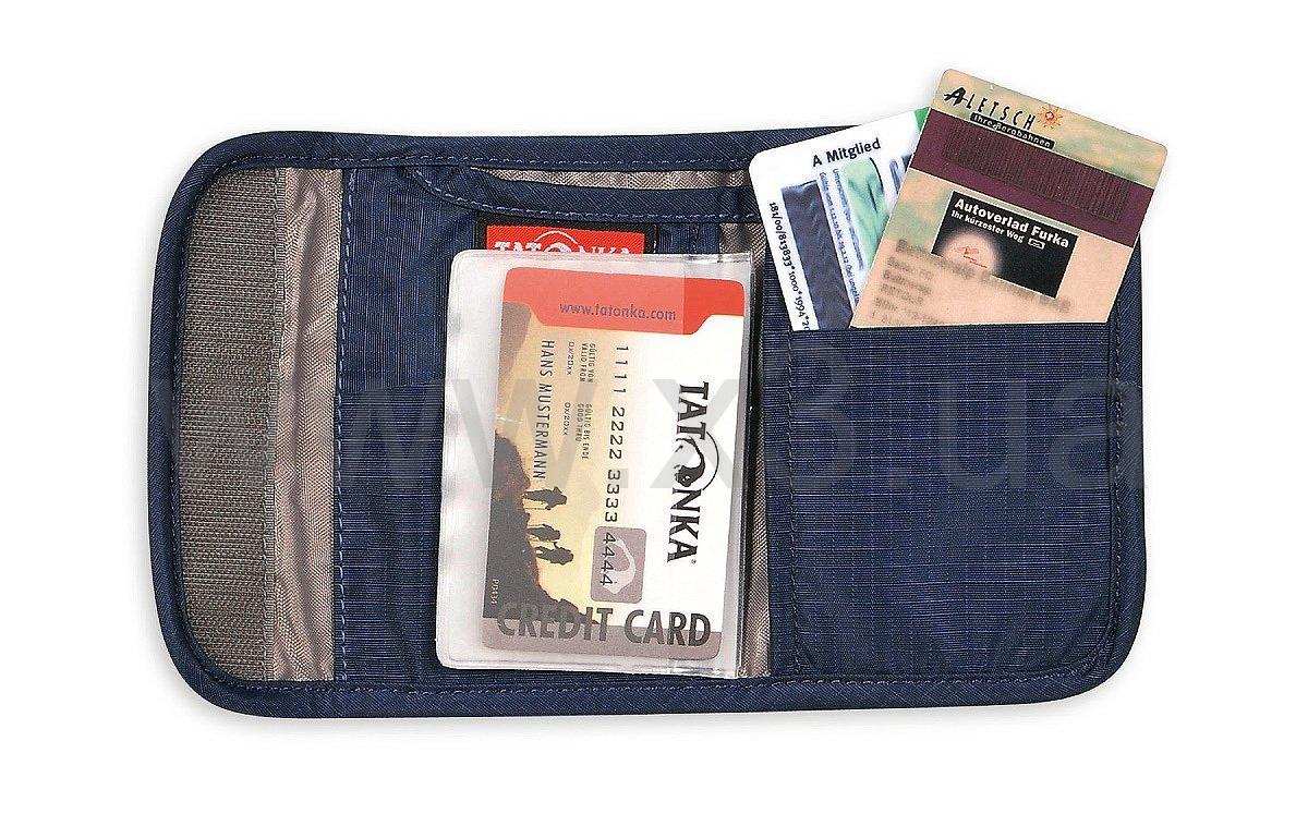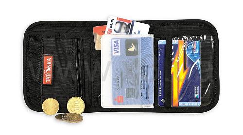 Tatonka Money Box Rfid B - кошелек и визитница одновременно. Маленький и удобный, с лёгкостью поместится в любой карман. Застежка Velcro. Отделения для документов с фотографией или визиток из прозрачного материала. Покрытие материала с технологией Cryptalloy Foil не позволяет считывать информацию с банковских карт.