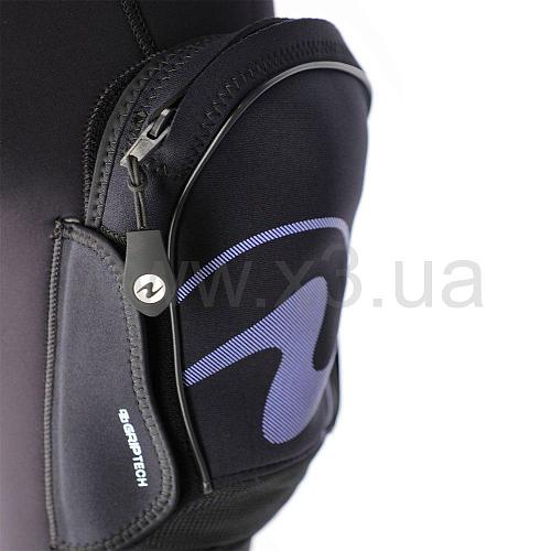 Dynaflex сделан из эластичного неопрена 5.5 мм, с использованием ткани UltraspanTM, двойных манжет с водонепроницаемым уплотнением и полугерметичной застежки-молнии. Приятный дизайн. Сьемный карман на правом бедре.