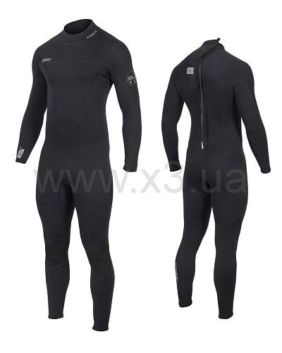 Комфортный гидрокостюм с длинными рукавами и штанами выполняет функцию термозащиты в холодной воде, водоотталкивающие свойства костюма позволяют сохранять тепло внутри. Особый крой обеспечивает прочность гидрокостюма, защищает кожу от раздражения, усилен в области колен, оснащен молнией на спине.