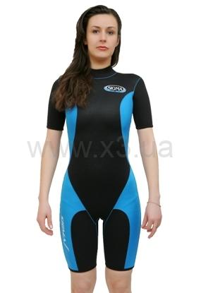 Миникомбинезон без шлема с молнией, проходящей сзади, где регулируемый воротник-стойка выполнен из гладкой резины. Идеальная посадка по фигуре, яркие вставки делают комбинезоны очень привлекательными.