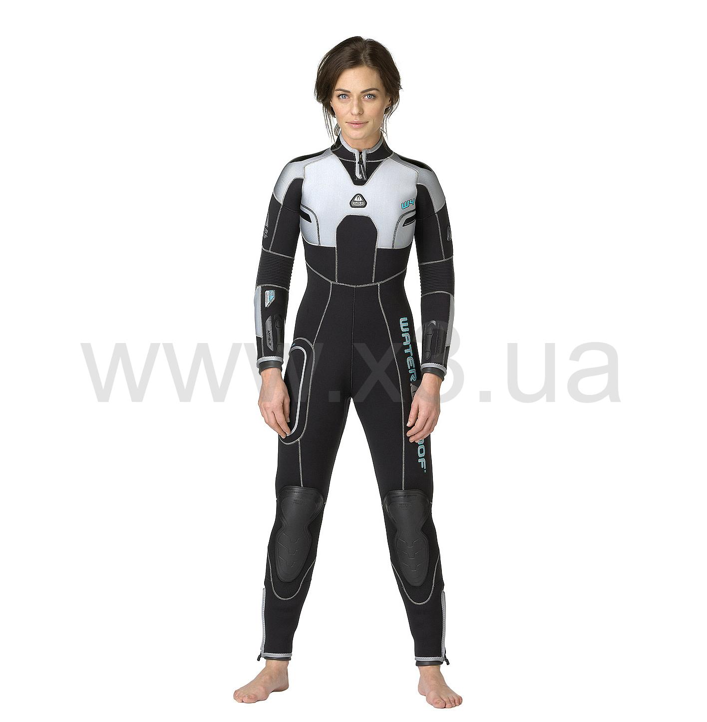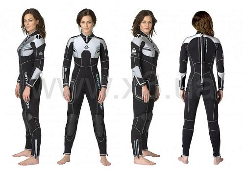 Анатомический 3D дизайн с оформленным изгибом для рук и ног, с эластичными вставками в суставах и конструкцией, учитывающей особенности строения женской фигуры, обеспечивают комфортную посадку костюма на теле дайвера и его расслабленное положение в воде. Литые резиновые 3D наколенники идеальны для инструктора, который проводит большое количество времени на своих коленях во время занятий со студентами.