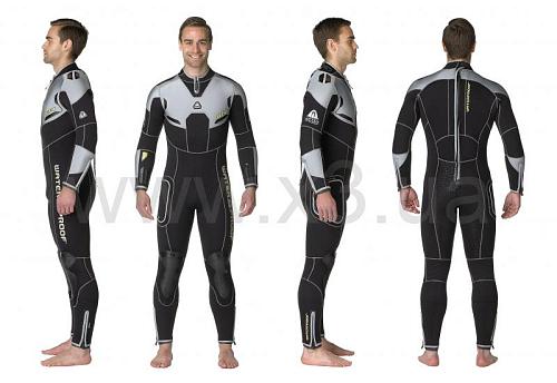 Анатомический 3D дизайн с оформленным изгибом для рук и ног, с эластичными вставками в суставах и конструкцией, учитывающей особенности строения мужской фигуры, обеспечивают комфортную посадку костюма на теле дайвера и его расслабленное положение в воде. Литые резиновые 3D наколенники идеальны для инструктора, который проводит большое количество времени на своих коленях во время занятий со студентами.