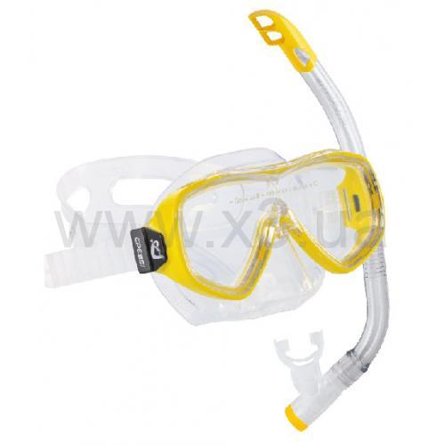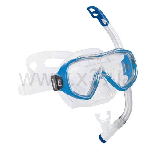 Детский набор состоит из трубки и одностекольной маски с иллюминатором, которая выполнена из закалённого стекла, что придаёт высокую износостойкость и достаточную механическую прочность. Фланец маски изготовлен из тёмного или прозрачного силикона, а обойма из ударопрочной пластмассы. Фиксатор натяжения затылочного ремешка упрощённый.