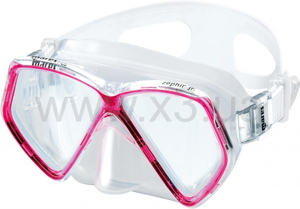 Двухлинзовая маска Mares Zephir JR. с привлекательным дизайном в стиле X-Vision, имеет оптимальное подмасочное пространство благодаря своей конструкции. Две линзы расположены под углом, который даёт хороший обзор, в том числе в верхней и нижней части. Кроме того, между лицом и иллюминатором внутренней маски находится небольшая воздушная прослойка, которая позволяет видеть происходящее снаружи без искажений. Ремень изготовлен из мягкого силикона, поэтому не вызывает раздражений и прочно фиксирует маску на голове. Пряжки для регуляции ремешка расположены на обтюраторе, что очень удобно при эксплуатации. Дыхательная трубка с брызгоотбойником и нижним дренажным клапаном.