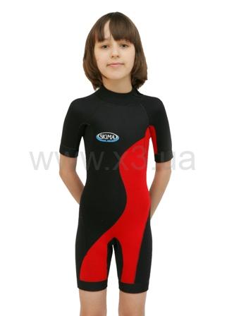 Для детей различного возраста выпускаются гидрокомбинезоны различных моделей Sigmasub. Короткие миникомбинезоны с яркими вставками из неопрена, дублированного с двух сторон нейлоном. Молния расположена вертикально сзади.