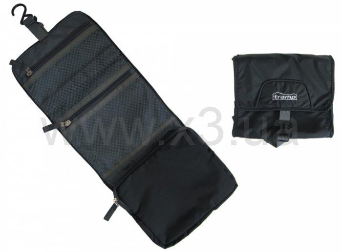 Косметичка Tramp имеет три отсека на молниях (два из сетки).