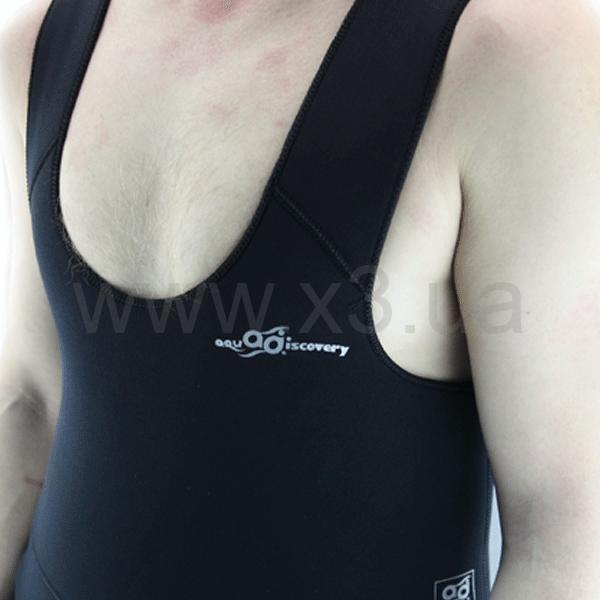 Изготовлен из эластичного неопрена фирмы Nam Liong толщиной 5 мм, который обладает повышенной памятью пены, т.е. восстановлением толщины после глубоких и длительных нырков, долговечностью. Наружное покрытие – черный нейлон. Внутри – открытая пора.
