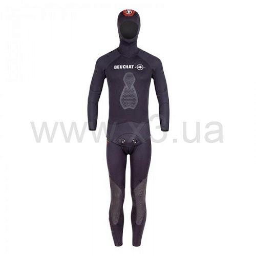 Гидрокостюм Beuchat Espadon 5мм 2023, в разработку этого костюма для подводной охоты было вложено множество новых идей. Снаружи Espadon Equipe – это все тот же классический черный гидрокостюм с «открытой порой» внутри, и нейлоном снаружи с курткой и комбинезоном. Но по сути – это принципиально новый анатомический крой. Куртка состоит из 21 независимой детали, а комбинезон – из 12. Все неопреновые элементы скреплены и проклеены вместе. Была переработана форма поясничного изгиба, а также паховая область для более плотного прилегания к телу. «Проблемные места» подмышек, локтевых сгибов и внутренних частей колен теперь не будут раздражаться во время долгой охоты, благодаря бесшовным вставкам в этих зонах. Шлем костюма Espadon Equipe был переделан и имеет меньшее лицевое отверстие. Края рукавов были уплотнены и оснащены эластичным швом, а край куртки обметали эластичной прочностной лентой. Все это призвано дать подводному охотнику свободу движения и комфорт, отличное прилегание костюма к телу и сохранение тепла на все время подводной охоты.