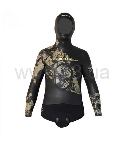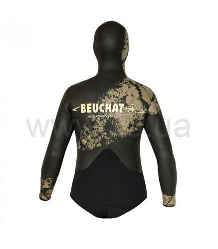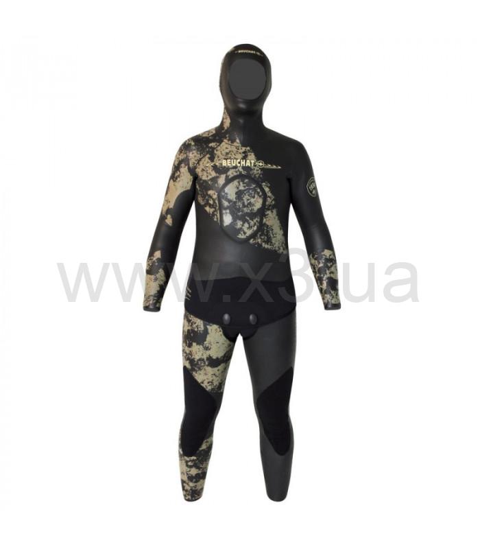 Beuchat ESPADON ELITE 7 мм - гидрокостюм премиум класса создан для опытных подводных охотников, которым требуется гладкий костюм для эффективной и интенсивной охоты на глубине. Изготовлен костюм из эластичного неопрена Elaskin X10 для комфорта и свободы движений. Внутренняя сторона костюма классическая голая пора, она обеспечивает максимальной термозащиой, снаружи – гладкий неопрен. Гладкая внешняя сторона костюма быстро высыхает на ветру и не охлаждается, что особенно важно в конце любых погружений, а также для ныряющих с лодки. Куртка костюма имеет встроенный капюшон, штаны без лямок. Эксклюзивная раскраска X-Ray Camo создана на основе камуфляжа Beuchat Trigocamo, переработанного под гладкое покрытие костюма. Лекала костюма разработаны с учётом анатомических изгибов спины и ягодиц. Правильный крой уменьшает образование складок и натяжения материала в седле штанов. Специальная вытачка на пояснице предотвращает образование водных пустот в области спины и между плечами. Бесшовные эластичные вставки на плечах, под коленями и в локтях снижают трение костюма о кожу. Промежность штанов и нижняя часть куртки, со вставками из эластичной ткани для уменьшения износа костюма в зонах повышенного трения. Естественные монохромные цвета позволяют охотнику слиться с окружающим пейзажем. Камуфляж размещен в основном на передней поверхности костюма и разделен на несколько различных зон, разбивая силуэт и делая его ещё менее заметным. Удобные наколенники из Supratex 2 устойчивы к истиранию. Куртка костюма оснащена накладкой на груди, не создающей дополнительного сопротивления в воде и улучшающей сцепление для упора ружья при заряжании.