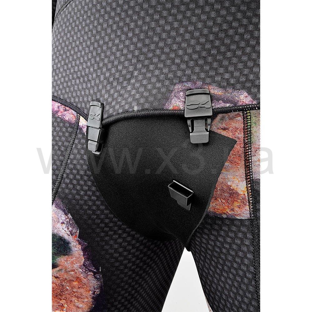 Эксклюзивный дизайн этого гидрокостюма отличается фоном цвета углеродного волокна с пятнами 3D замаскированного морского дна. Это решение нарушает образ охотника, усиливая маскирующий эффект.