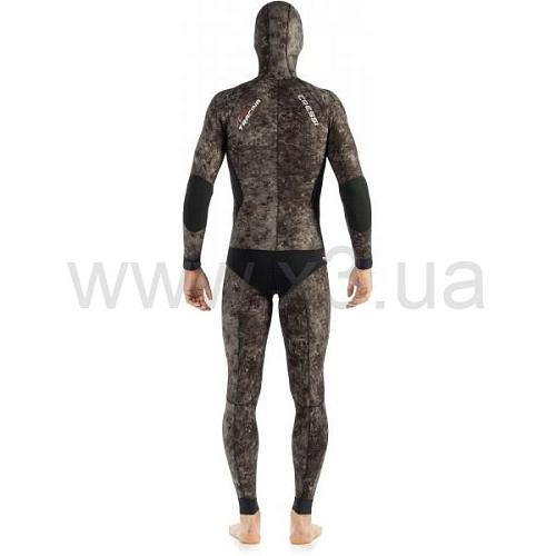 Гидрокостюм Tracina 7 мм состоит из двух частей, куртки и штанов с завышеной талией. Создан с применением эксклюзивного темного камуфляжа Cressi Dark Digital Specter Pat, разработанный специальной компьютерной программой, призванной сделать камужляж более сложным. Такая окраска гидрокостюма придает ему необычайную маскировку под темные твердые объекты, находящиеся на дне. Гидрокостюм изготавливается из очень мягкого и тянущегося неопрена «Ультраспан». Внутреннее покрытие «открытая пора» Преформированный анатомичный крой придает свободу движениям. Имеется износоустойчивая накладка на груди для зарядки ружья. Обтюраторы "ватер стоп" - вокруг лица на шлеме, запястьях и области талии из гладкого неопрена Smooth skin препятствуют проникновению воды внутрь костюма. Места изгиба и талия усилены покрытием Powertex. Штаны с завышенной талией также снабжены обтюраторами на лодыжках и талии и усилены покрытием Powertex на коленях.