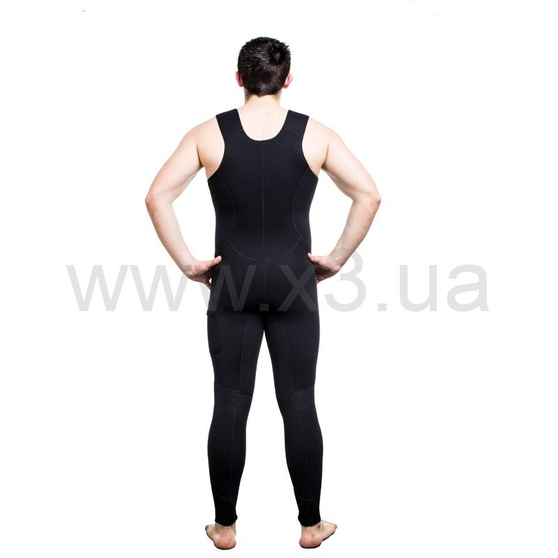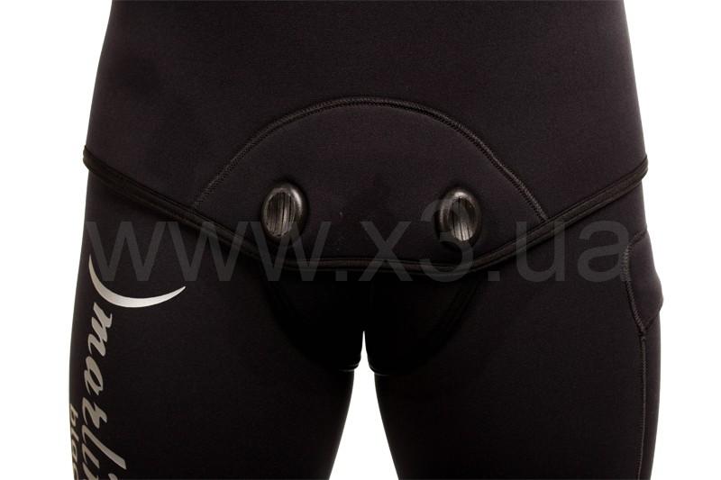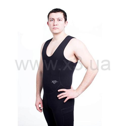 В брюках-комбинезоне в области майки применяется меньшая толщина неопрена (в моделях толщиной 7 и 9 мм), для облегчения дыхания охотника, в то же время, в районе солнечного сплетения добавлена специальная вставка из более толстого неопрена, для облегчения зарядки ружья.