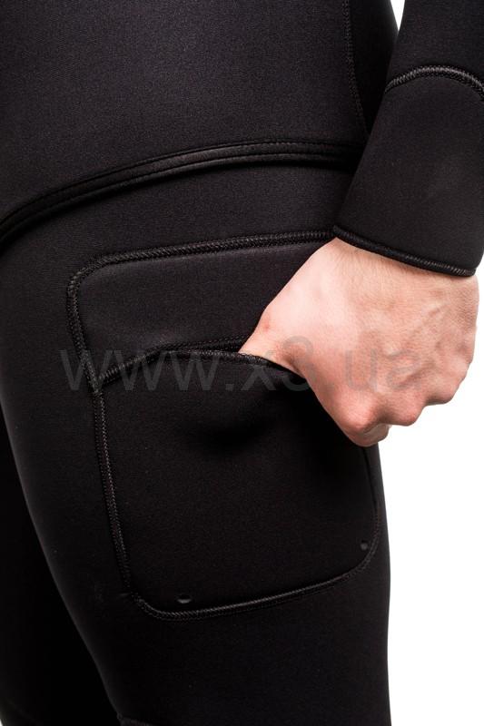 В гидрокостюме Marlin Blackskin есть крепление для ножа которое расположено в районе левого плеча. Эргономично и безопасно. Так же присутствует карман на бедре, который позволяет положить в него ключи, телефон в гермопакете и многие другие ценные мелочи.