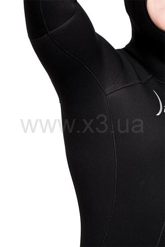 Обтюраторы из материала smooth skin (смус скин) на ногах, руках и шлеме, дополнительно предотвращают попадание воды вовнутрь гидрокостюма.