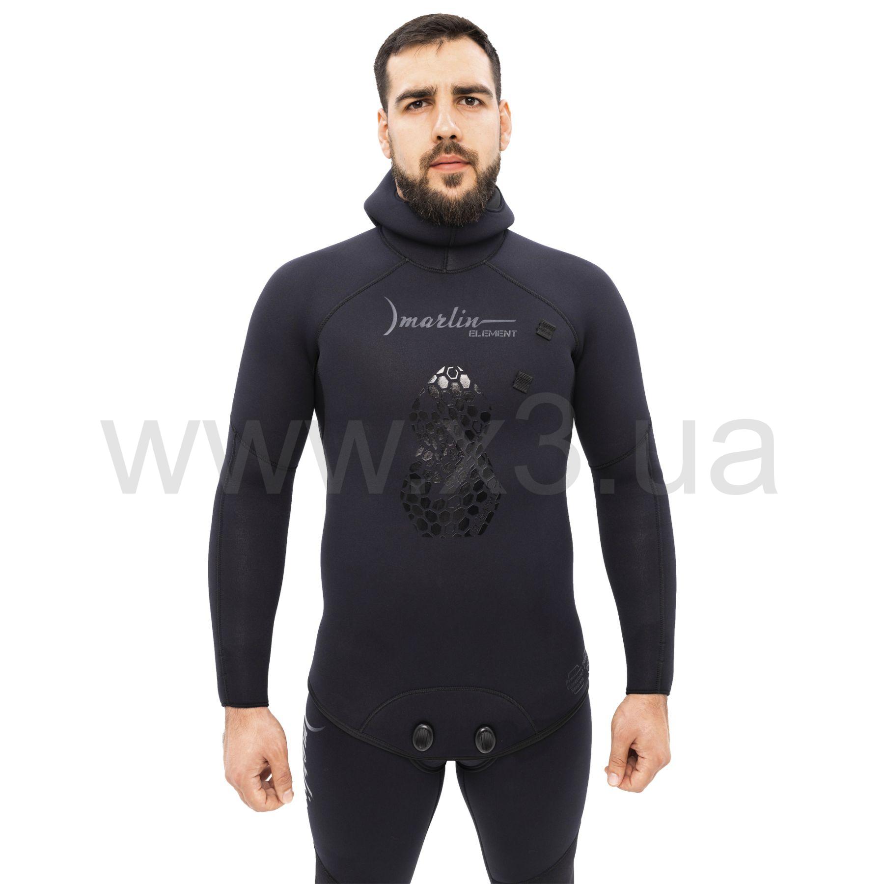 Гідрокостюм Marlin ELEMENT 5 мм (Марлін ЕЛЕМЕНТ) — це доступний гідрокостюм для підводного полювання, який складається з куртки з інтегрованим шоломом і штанів із високою талією. Зовнішнє покриття — нейлон, всередині — відкрита пора (одягається з використанням мильного розчину).
