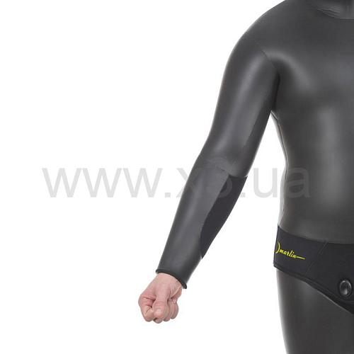 Гидрокостюм Marlin Neptune (Марлин Нептун) - это «голый» костюм, изготовленный из неопрена Yamomoto 38, с гладким наружным покрытием Smooth skin (смус скин). Данный материал имеет минимальное сопротивление в воде. И самое главное – он не впитывает влагу, а значит не обмерзает. Материал Yamomoto 38 отличается хорошим теплосбережением, что положительно влияет на использование его в холодное время года. Внутренняя часть костюма – открытая пора. Гидрокостюм скроен анатомически. Брюки с высокой талией без лямок. Соединения деталей проклеены специализированным неопреновым клеем. Колени и локти костюма защищены прочным к истиранию материалом Duratex (дюратекс). Нижняя часть куртки выполнена из неопрена, дублированного нейлоном, что исключает возможность повреждения костюма в процессе одевания и снятия и увеличивает срок эксплуатации изделия.