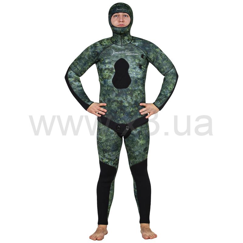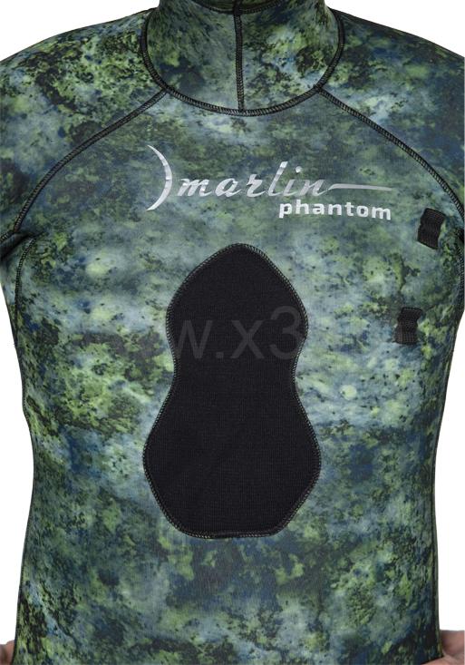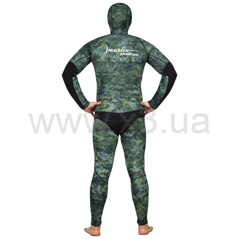 Гидрокостюм Marlin Phantom (Марлин Фантом) – гидрокостюм для подводной охоты, изготовленный из неопрена Nam Liong (Нам Лионг). Мягкий эластичный неопрен марки 3D (в моделях 5 и 7 мм), анатомический крой состоящий из 29 деталей обеспечивают комфорт при длительном использовании. Наружное покрытие – ультрастрейч, обладает повышенной эластичностью, внутренняя поверхность – открытая пора. Куртка имеет крой типа реглан, который увеличивает комфорт и создаёт максимальное прилегание гидрокостюма при эксплуатации. Для облегчения дыхания (на моделях 7, 9 и 10 мм) - майка комбинезона (Long John) выполнена из неопрена меньшей толщины. Материал duratex (дюратекс) защищает колени и локти костюма от преждевременного истирания.