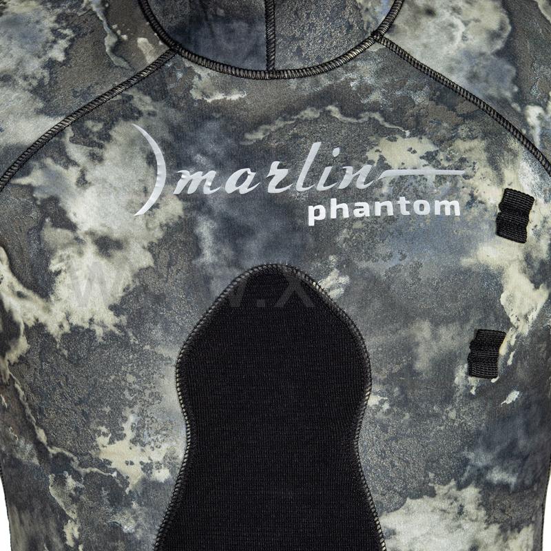 Гидрокостюм Marlin Phantom (Марлин Фантом) – гидрокостюм для подводной охоты, изготовленный из неопрена Nam Liong (Нам Лионг). Мягкий эластичный неопрен марки 3D (в моделях 5 и 7 мм), анатомический крой состоящий из 29 деталей обеспечивают комфорт при длительном использовании. Наружное покрытие – ультрастрейч, обладает повышенной эластичностью, внутренняя поверхность – открытая пора. Куртка имеет крой типа реглан, который увеличивает комфорт и создаёт максимальное прилегание гидрокостюма при эксплуатации. Для облегчения дыхания (на моделях 7, 9 и 10 мм) - майка комбинезона (Long John) выполнена из неопрена меньшей толщины. Материал duratex (дюратекс) защищает колени и локти костюма от преждевременного истирания.