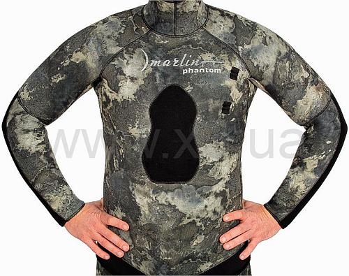Гидрокостюм Marlin Phantom (Марлин Фантом) – гидрокостюм для подводной охоты, изготовленный из неопрена Nam Liong. Анатомический крой состоящий из 29 деталей обеспечивают комфорт при длительном использовании. Наружное покрытие – ультрастрейч, обладает повышенной эластичностью, внутренняя поверхность – открытая пора. Куртка имеет крой типа реглан, который увеличивает комфорт и создаёт максимальное прилегание гидрокостюма при эксплуатации. Для облегчения дыхания (на моделях 7, 9 и 10 мм) - майка комбинезона (Long John) выполнена из неопрена меньшей толщины. Материал duratex (дюратекс) защищает колени и локти костюма от преждевременного истирания.