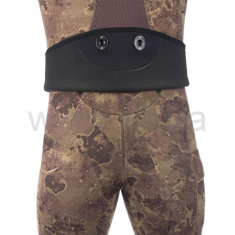 Нагрудник (упор для зарядки ружей), вшитый в гидрокостюм, в отличие от приклеенных аналогов, исключает отрывание его в процессе эксплуатации.
