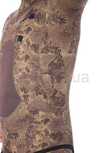 Больше камуфляжа – костюм максимально выполнен в однородном камуфляже Олива. Дюратекс, используемый в защите груди, колен и локтей, не будет демаскировать подводного охотника, так как тоже подобран в тон камуфляжа. Отсутствие черных контрастных деталей положительно скажется на маскировке подводного охотника.