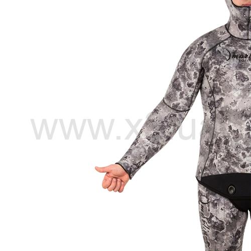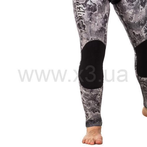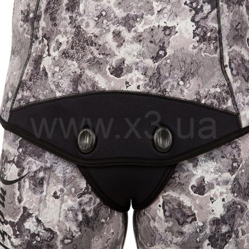 Гидрокостюм не имеет упора для зарядки ружей на груди, что облегчает дыхание подводного пловца. Брюки костюма с высокой талией, без лямок. Колени защищены прочным к истиранию материалом Duratex.