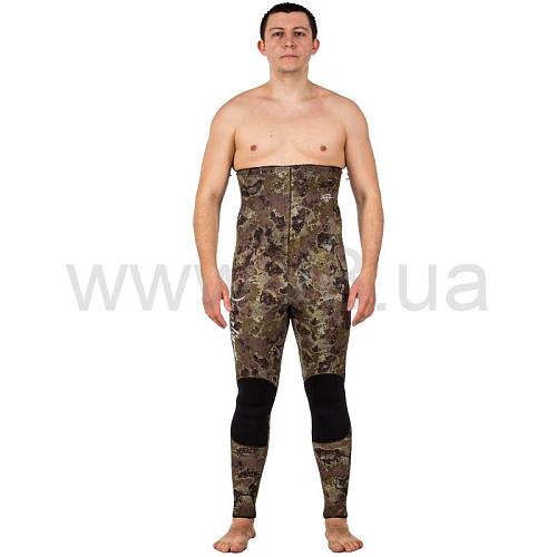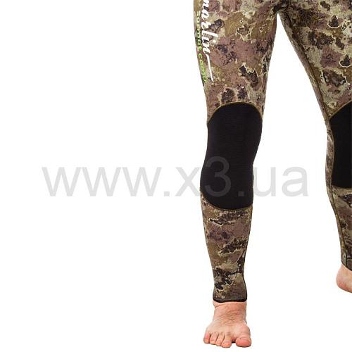 Гидрокостюм не имеет упора для зарядки ружей на груди, что облегчает дыхание подводного пловца. Брюки костюма с высокой талией, без лямок. Колени защищены прочным к истиранию материалом Duratex.