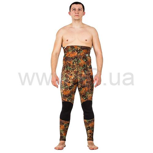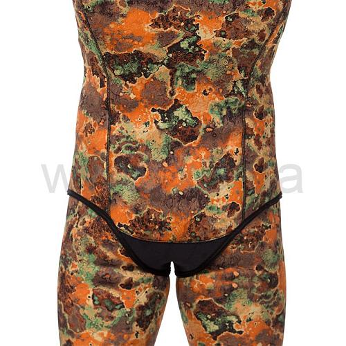 Гидрокостюм не имеет упора для зарядки ружей на груди, что облегчает дыхание подводного пловца. Брюки костюма с высокой талией, без лямок. Колени защищены прочным к истиранию материалом Duratex.