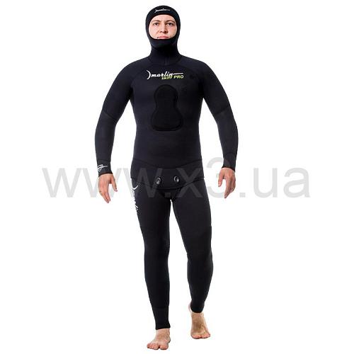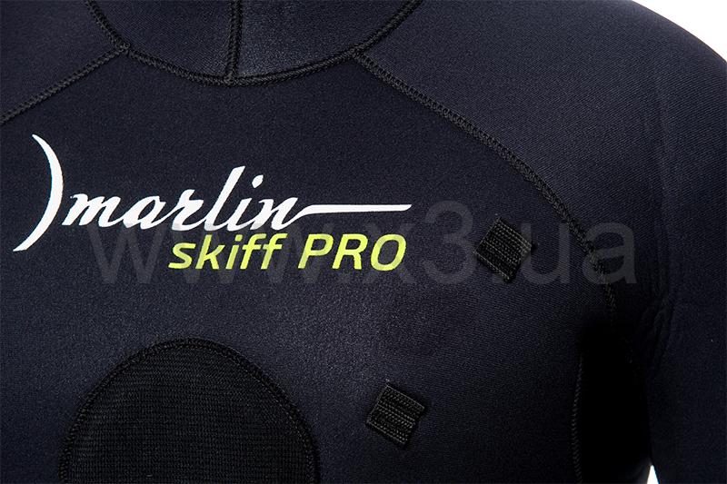 Гидрокостюм Marlin Skiff Pro (Марлин Скиф Про) – обновленная модель гидрокостюма Skiff 2.0. При производстве данной модели используется эластичный и мягкий неопрен марки L от фирмы Шейко. Анатомически точный крой гидрокостюма, состоящий из 35 деталей, обеспечивает максимально свободное движение подводного охотника в воде. Куртка имеет крой типа реглан, который увеличивает комфорт и обеспечивает максимальное прилегание гидрокостюма. С внутренней стороны нижняя часть куртки защищена нейлоном – это позволяет надевать и снимать куртку без опасения надорвать или оставить задиры. Основное отличие этой модели от Skiff 2.0 – штаны без лямок, с дифференциальной толщиной неопрена в области талии (на моделях 5, 7 и 9 мм)*.