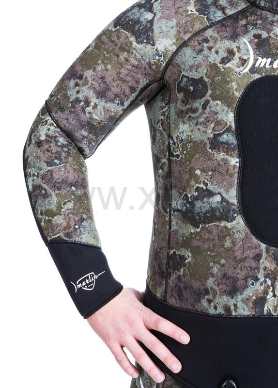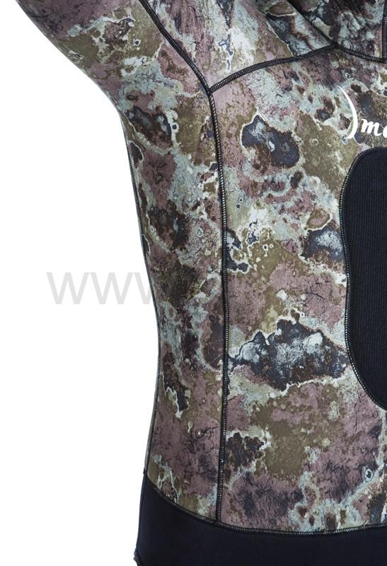 В изготовлении этого гидрокостюма применяется эластичный, мягкий, неопрен премиум класса фирмы Шейко. Снаружи неопрен покрыт сверхрастяжимой камуфлированной лайкрой, внутри – открытая пора.