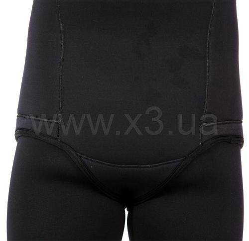 Куртка имеет крой типа реглан, который увеличивает комфорт и обеспечивает максимальное прилегание гидрокостюма. С внутренней стороны нижняя часть куртки защищена нейлоном – это позволяет надевать и снимать куртку без опасения надорвать или оставить задиры. Брюки костюма с высокой талией, без лямок. Колени и локти гидрокостюма защищены прочным к истиранию материалом Duratex. Гидрокостюм имеет «мягкие швы» благодаря проклейке специализированным неопреновым клеем. Поверхностные швы выполнены двухниточным плетением на специализированном немецком оборудовании. В гидрокостюмах толщиной 3, 5 и 7 мм все края костюма обработаны оверлоком.