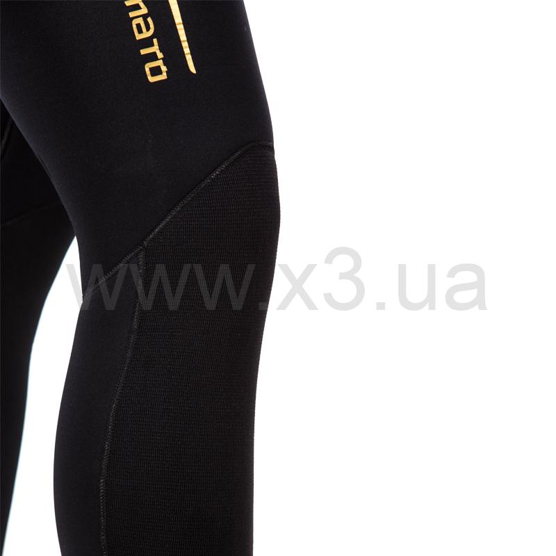 Куртка имеет крой типа реглан, который увеличивает комфорт и обеспечивает максимальное прилегание гидрокостюма. С внутренней стороны нижняя часть куртки защищена нейлоном – это позволяет надевать и снимать куртку без опасения надорвать или оставить задиры. Брюки костюма с высокой талией, без лямок. Колени и локти гидрокостюма защищены прочным к истиранию материалом Duratex. Гидрокостюм имеет «мягкие швы» благодаря проклейке специализированным неопреновым клеем. Поверхностные швы выполнены двухниточным плетением на специализированном немецком оборудовании. В гидрокостюмах толщиной 3, 5 и 7 мм все края костюма обработаны оверлоком.