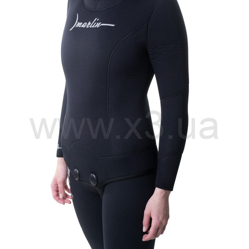 Гидрокостюм Marlin Zarina (Марлин Зарина) – женская модель костюма для подводной охоты. Специальный крой костюма позволяет учитывать анатомические особенности женского тела. Для изготовления этой модели используется мягкий, эластичный неопрен, фирмы Шейко, обладающий повышенной памятью пены. Наружное покрытие – черный нейлон, внутренняя поверхность – открытая пора. В брюках Long John в области груди используется неопрен меньшей толщины, что значительно облегчает дыхание.