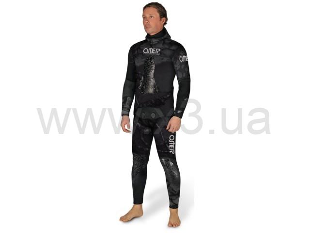 Камуфлированный гидрокостюм для подводной охоты Omer с открытой порой. Эффективная маскировка обеспечивается за счет уникального черного камуфляжа. Толщина неопрена в 5 мм позволяет комфортно охотиться в период конец весны и все лето.