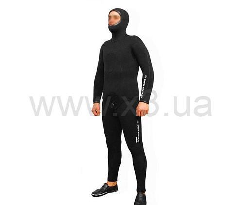 Гидрокостюм для подводной охоты. Толщина 10 мм, изготовлен из неопрена. Yamamoto #38. Наружная сторона – гладкая (SmoothSkin), внутри открытая пора. Высокие штаны с отворотом из 5мм неопрена для лучшей герметизации с курткой.