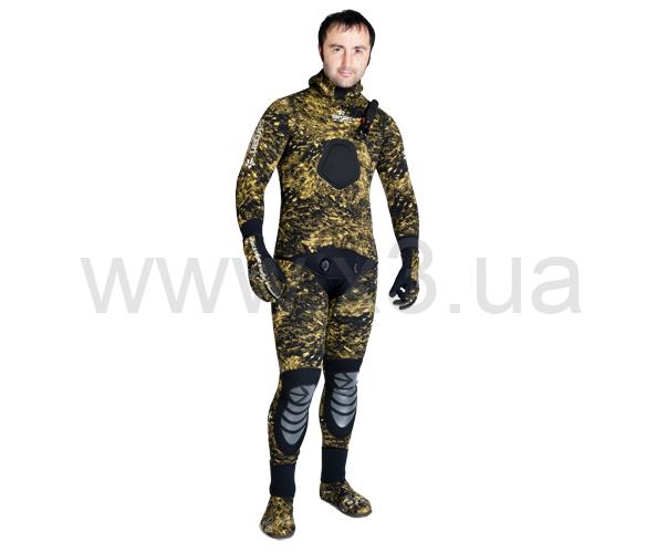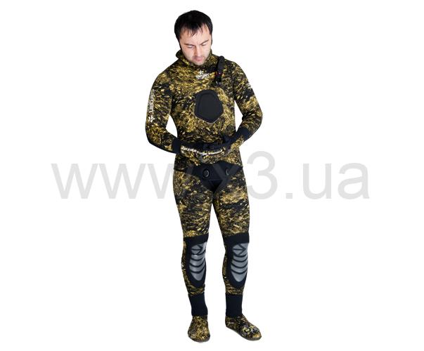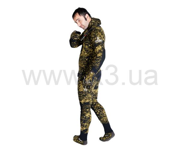 Гидрокостюм для самых опытных и взыскательных подводных охотников. Полностью камуфлированный. Камуфляж – биоцифровой камуфляж RDEST 2.0. «Открытая пора» изнутри и камуфлированный нейлон снаружи.