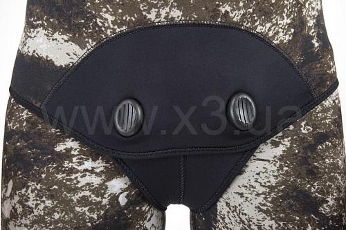 Неопрен Ямамото 38 приклеен и сшит с плоским оверлоком. Верхнее покрытие текстильное. Предварительно сформированный анатомический разрез на руках/коленях/спине и Aquastop закрываются вокруг лица, запястий и лодыжек, с системой SSRS (супер растягивающее уплотнение). 7-миллиметровая куртка с капюшоном с "бобровым" хвостовым. Брюки с высокой талией толщиной 5 мм с усилением Anti-abrasion от Powertex на коленях.