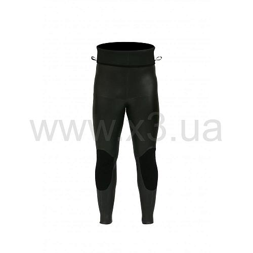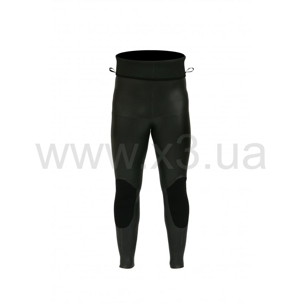 Во всех моделях гидрокостюмов для подводной охоты, штаны с высокой талией разработаны так, что б при одевании верхняя часть штанины (10 см.) которая сделана из более тонкого материала (кроме 3 и 5мм костюмов), отворачивалась, создавая воздушный замок или "waterstop", это означает что внутреннее покрытие куртки гидрокостюма, а именно открытая пора залипая с обтюрационным материалом штанов (нейлон/открытая пора) еще более ограничивает доступ воды под костюм.