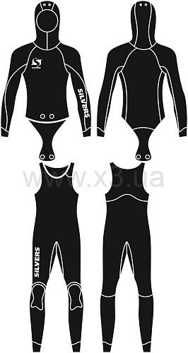 Данная модель гидрокостюма выполнена из неопрена толщиной 7,0±0,3мм, что обеспечивает более высокие теплоизоляционные качества костюма. Для более удобного одевания полукомбинезон снабжен текстильной застежкой на левом плече.