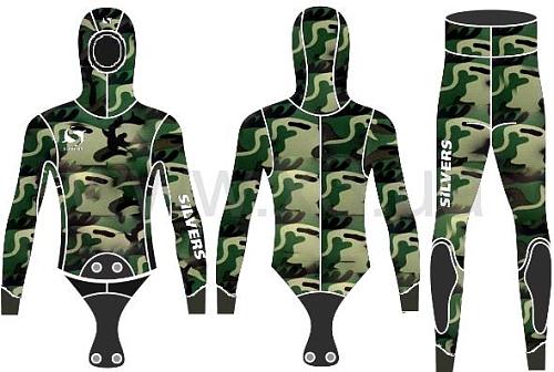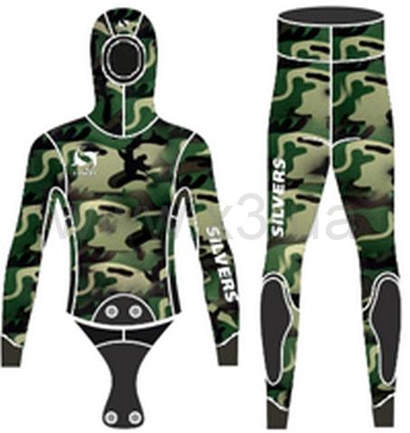Материал: неопрен 7 мм с наружным покрытием полиэстр камуфляж и внутренним – «открытая пора» (Р/C)