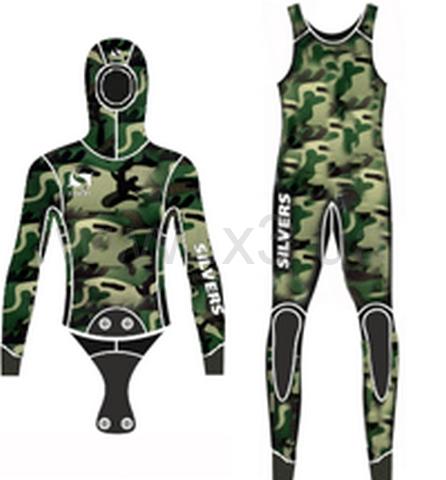 Гидрокостюм для подводной охоты Silvers изготавливается из неопрена толщиной 7 мм. Верхняя часть штанов Long John выполнена из неопрена толщиной 7 мм. Наружная часть гидрокостюма дублирована эластичной тканью стрейч, а внутренняя специально разрезана таким образом, что каждый «открытый» пузырек микропористой структуры неопрена становится маленькой присосочкой. В результате гидрокостюм буквально прилипает к телу и становится «второй кожей».