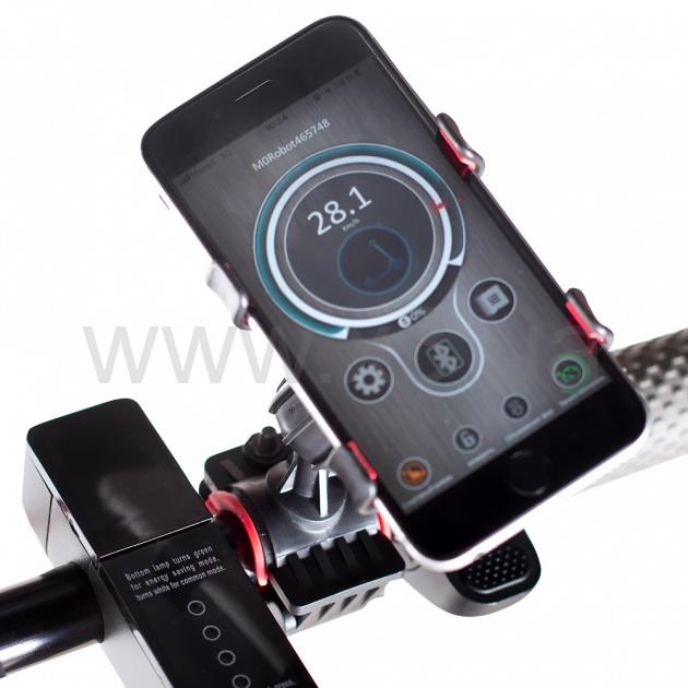 К электросамокату Вы сможете подключить мобильное приложение MiniRobot через Bluetooth. Используя приложение Вы сможете получать актуальную информацию о текущей скорости, уровню заряда батареи и тд. Сможете устанавливать режим езды, ограничить скорость, включить и выключить круиз-контроль, включить освещение и даже заблокировать электросамокат.