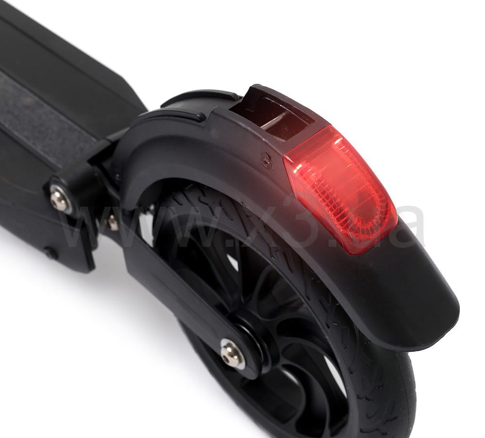 Самокат имеет мощную светодиодную фару, поездка с которой в темное время суток будет максимально безопасной.