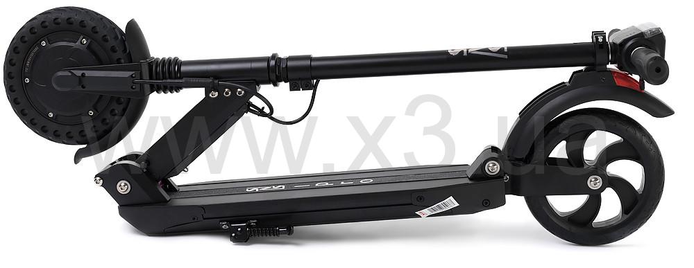 Корпус модели выполнен из алюминиевого сплава (Aluminium). В сложенном виде он довольно компактный и удобный для переноски. Вес самоката 12 кг. Максимальная нагрузка на раму 120 кг.