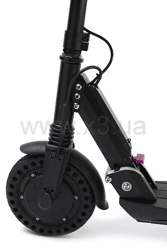 На рулевой стойке расположен бортовой компьютер, который показывает: заряд батареи, километраж и скорость движения. Изображение на дисплеи очень четкое и яркое, разглядеть параметры поездки можно будет, как днем, так и ночью. Максимально возможная скорость 30 км/ч - для самоката это очень внушительная цифра.