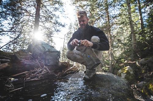 Емкость удобно крепится к рюкзаку, на стоянке ее можно повесить на ветку. Компактная - в пустом состоянии Seeker размером с кулак.