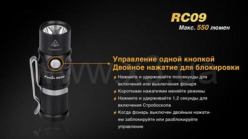 В модели Fenix RC09 используются и другие технические решения, которые делают его удобным и надежным. Например, каждый режим яркости при включении вносится в память фонаря. В следующий раз, когда фонарик потребуется использовать, он включится именно с той яркостью, которая была выбрана в прошлый раз. Если же нужно выбрать другой режим, достаточно воспользоваться единственной кнопкой управления на корпусе. Так что использовать фонарь максимально просто.