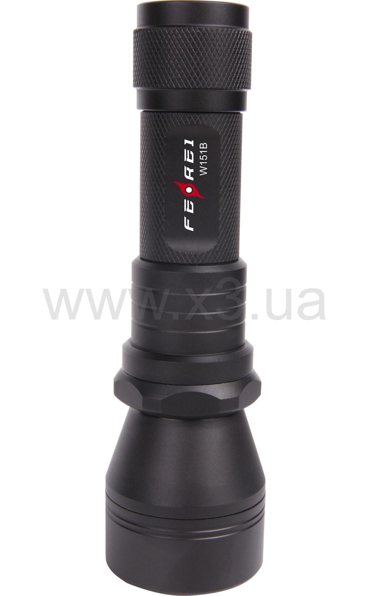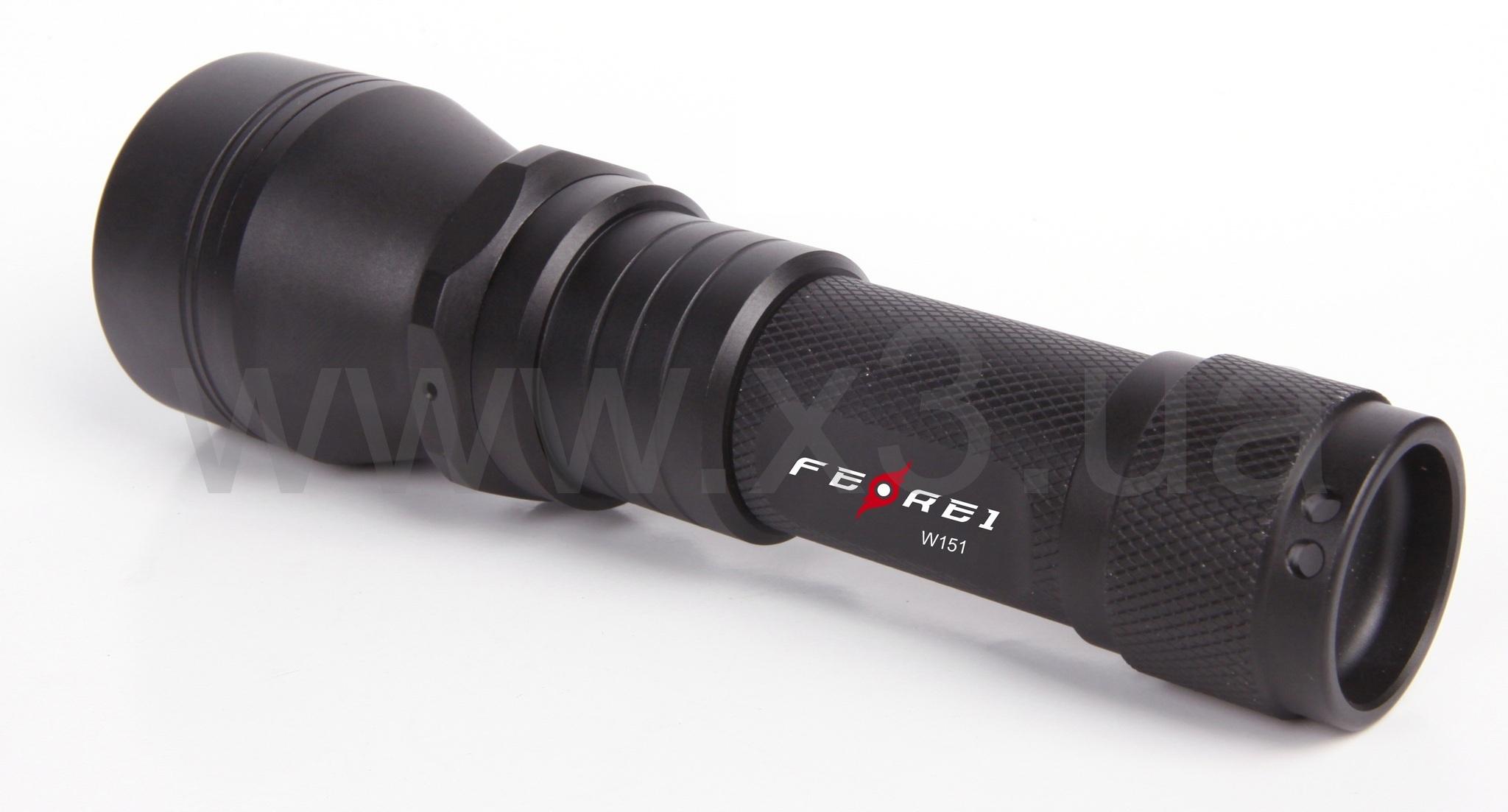 Водонепронищаемый фонарь Ferei W151B сделан из прочного алюминиевого сплава для подводной охоты не заменим работает на глубине до 150 метров, световой поток 650 люмен. Работает на 1 литиевом аккамуляторе, легко и быстро заряжается, время работы после полной зарядки 1,5 часов.