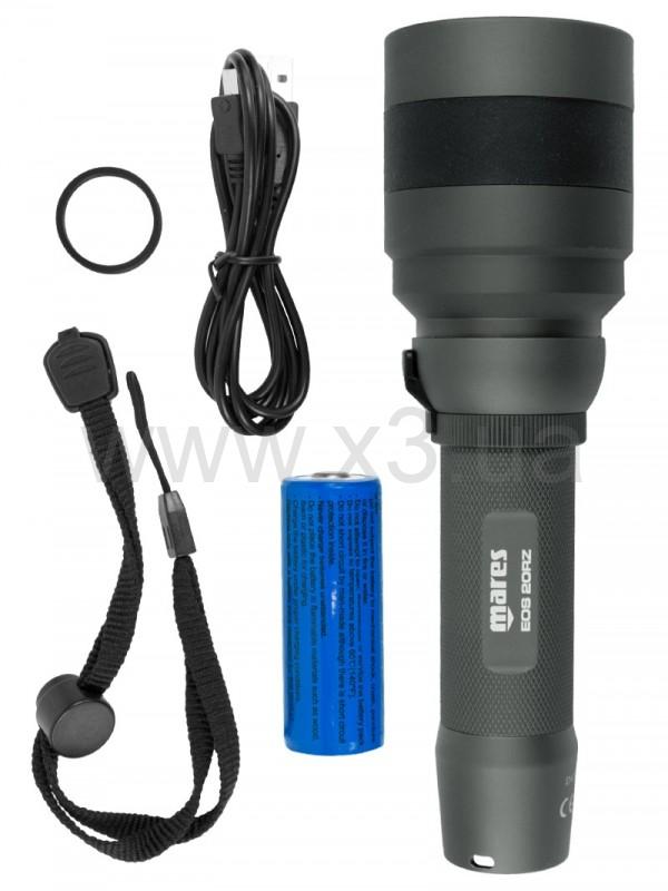 Mares EOS 20rz Torch - мощный фонарь с перезаряжаемой батареей и невероятно мощными люминесцентными лампами мощностью 2,3 тыс. люмен регулируемым углом луча.